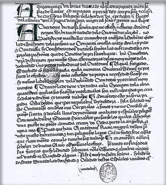 Unterschrift der Juana de Mendoza, geschrieben in schöner humanistischer Schrift (15. Jahrhundert)