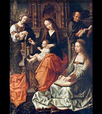 Isabel und Fernando mit der Heiligen Helena un der heiligen Barbara