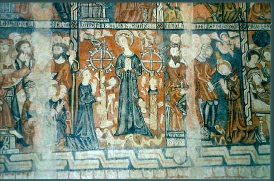 Lucía de la Marca, dargestellt in einer Freske vom Kloster von San Pedro de Burgal (Pallars Sobirà)