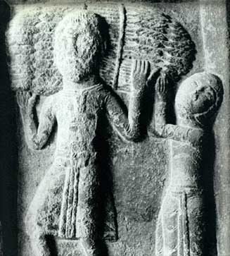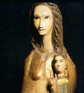 Schnitzerei der romanischen Jungfrau mit bezeichnendem populärem Charakter