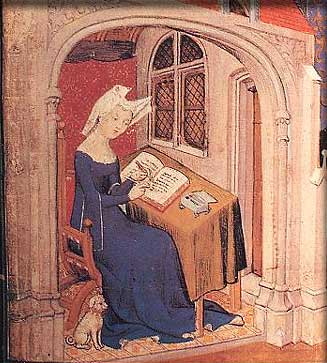 Cristina de Pizan schreibt in ihrem Zimmer